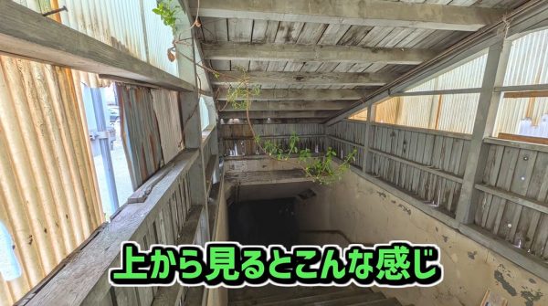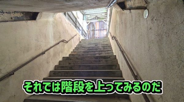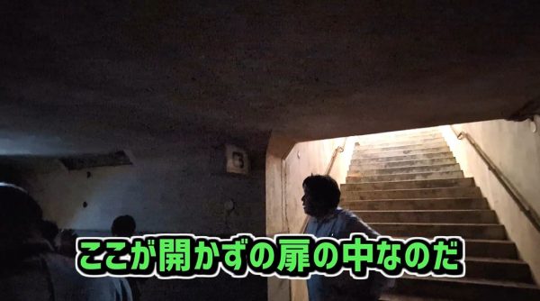次はいよいよ冒頭の謎の建物へ潜入。地下にある扉から行くとのことで階段を降ります。