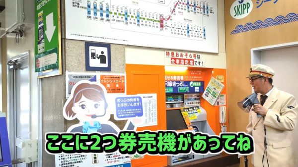 続いては改札前へ。現在の券売機の説明やみどりの窓口について教わったあと入場券をもらいました。