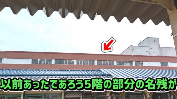 ホームからは、駅の屋上にかつての5階の名残である段差が見えました。