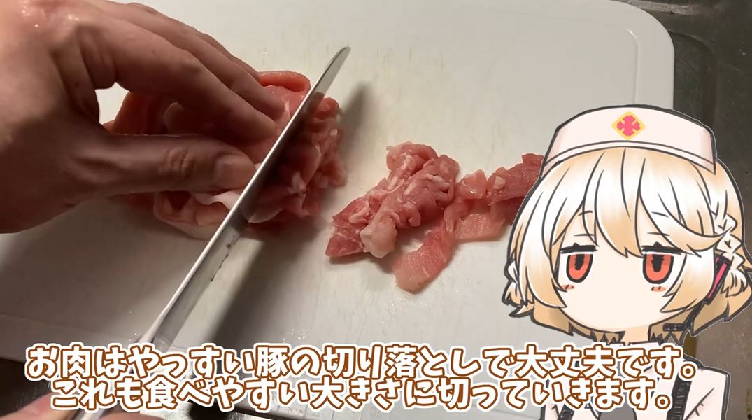 豚肉も食べやすくカット。安い切り落として大丈夫とのことです。