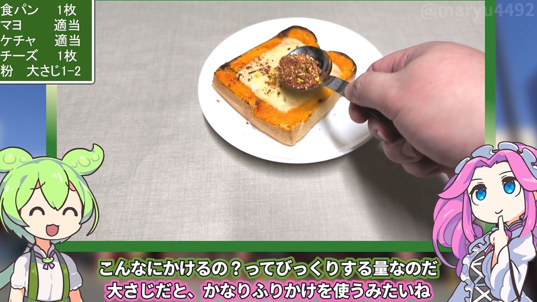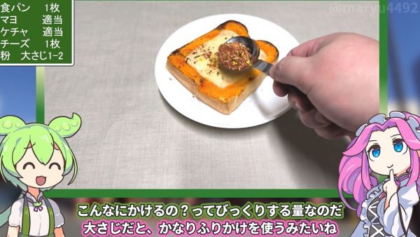 今回紹介したいのは、ニコニコ動画に投稿された『丸美屋のふりかけを使った「チーズバーガー風トースト」』というmaryu4492さんの動画です。