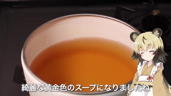 翌朝になりました。まずはスープ作り。大豆を鍋から取り除き、残ったお出汁を使います。少し味見をしてみると、口に入れた瞬間に焼けた大豆の香ばしさが広がります。旨味はやや控えめですが、あっさりしつつもしっかりとしたコクがあります。