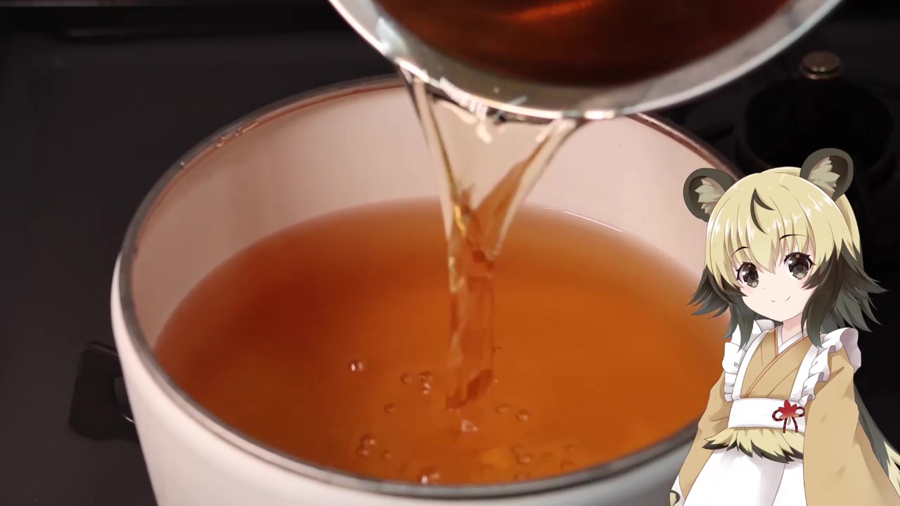 しかし、ラーメンスープとしてはまだパンチが足りないので、椎茸の戻し汁を味を見ながら加えていきます。すると、味に一気に厚みが出てきました。あとは加熱して旨味を濃縮します。