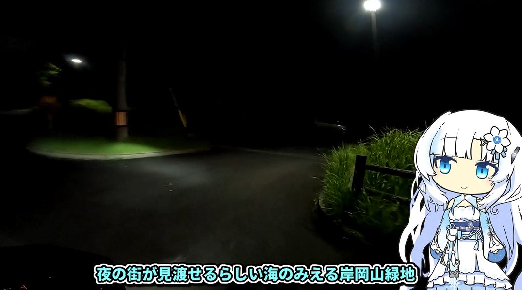 せっかくなので工場夜景だけではなく夜の街も撮ろうと、次は「海の見える岸岡山緑地」へ。緑地の多くが公園として整備されている場所です。