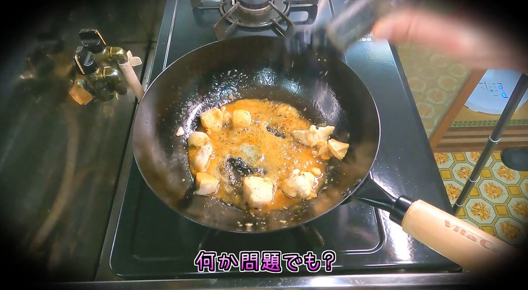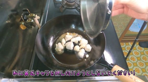 お肉は油を引いたフライパンで軽く炒めたあと、蒸し焼きにして中までしっかり火を通しました。