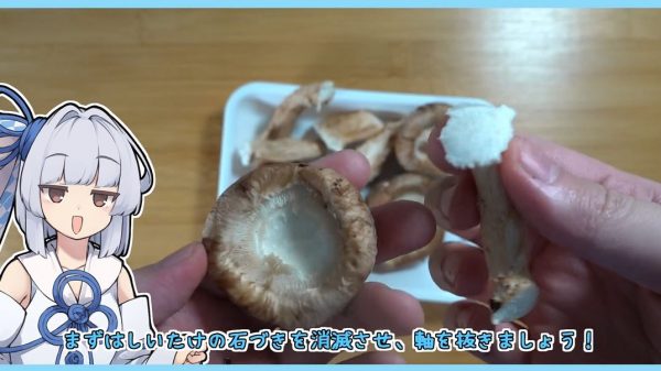 まずはシイタケの石づきを取りのぞいて軸を抜きました。