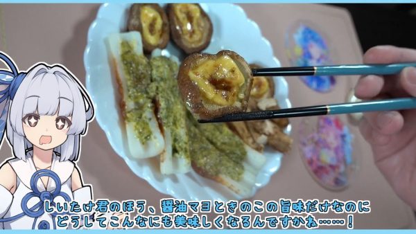 食べてみると、口いっぱいにマヨネーズが染み渡り生き返ったというるけ@雑のみ葵ちゃんさん。塩を振っただけでも美味しいシイタケはさらに美味しくなり、ちくわは実質磯辺焼の美味しさだとか。