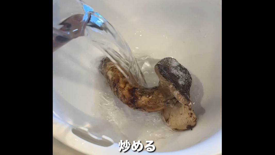 投稿者のと っ く ん 3 2 歳さんが、いただきものの高級国産マツタケを油で揚げるそうです。