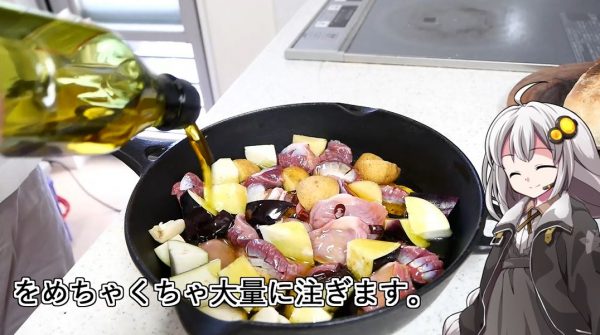 そして投げ売りされていたというオリーブオイルをたっぷりと。