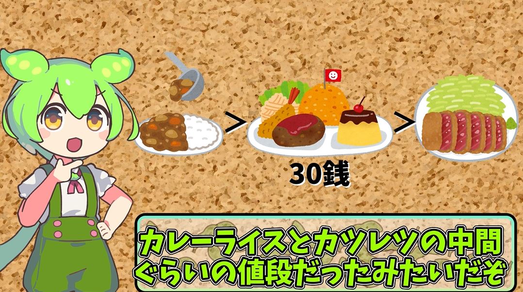 御子様洋食のお値段は30銭で、カレーライスとカツレツの中間の価格だったとか。