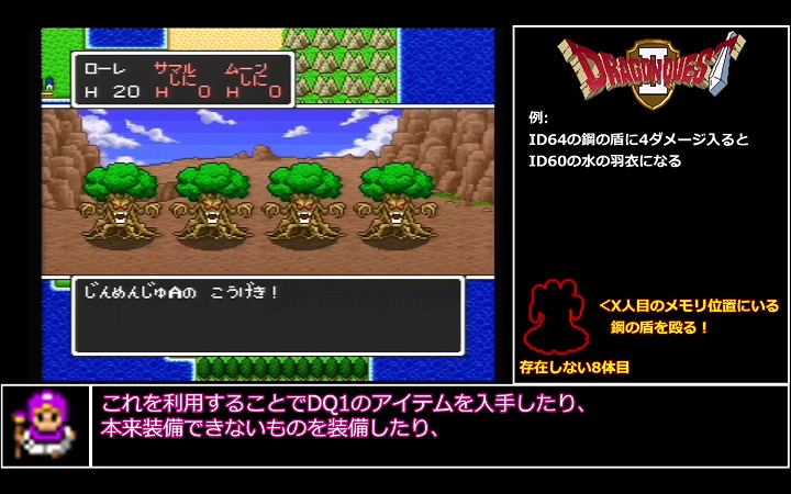 成功すれば本来入手できないアイテムを手に入れたり装備できる都合のいいバグなのだが、一方でもしもうまくいかなかった場合はゲームがフリーズ、最悪のケースではデータ消失につながるハイリスクハイリターンなテクニックであるようだ。