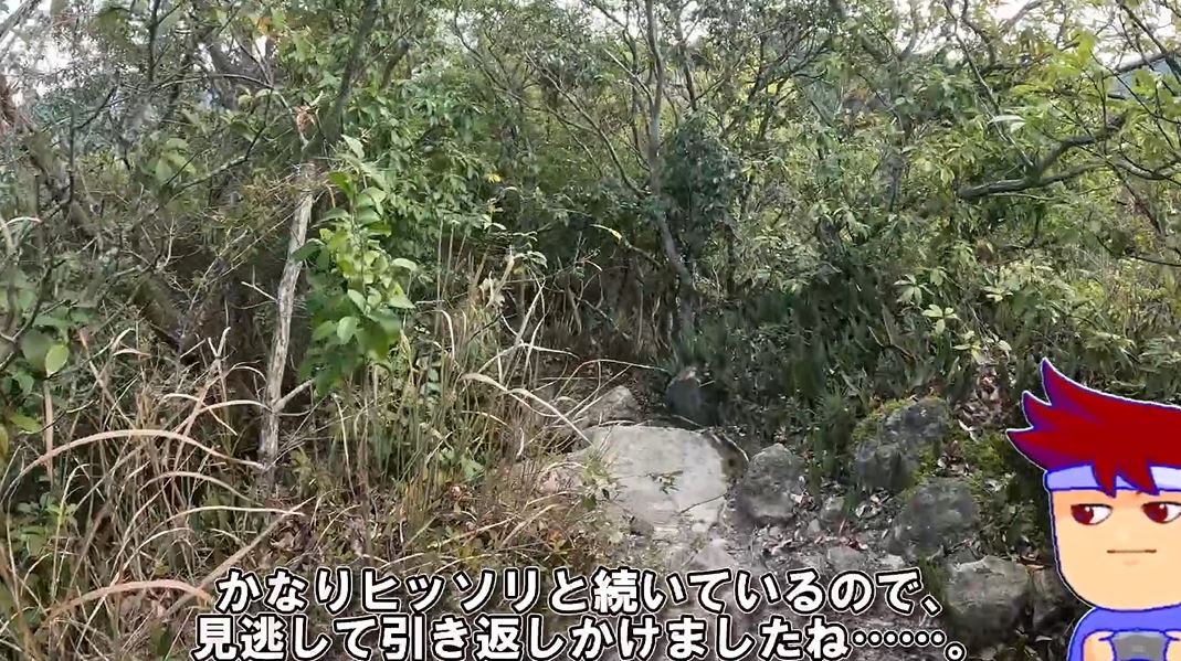 登山コースは岩を回り込んだ先にありました。かなりひっそり続いているので、見逃して引き返しそうになったそうです。