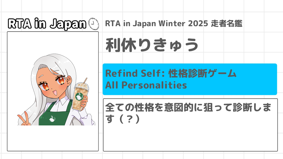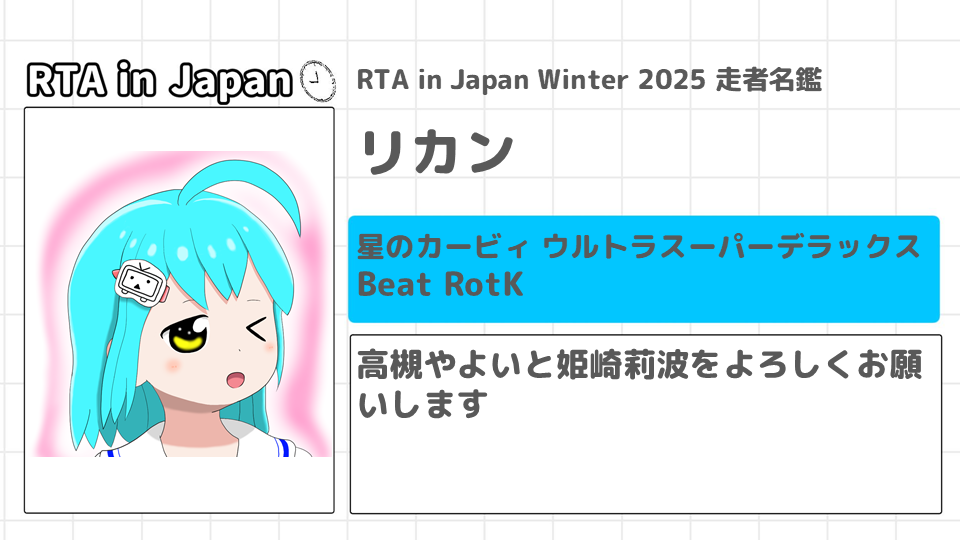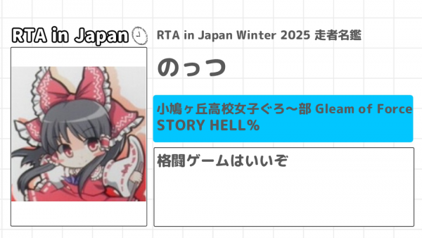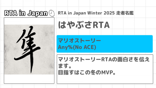 『RTA in Japan Winter 2025』走者名鑑! 100名以上の参加者のプレイするゲームとレギュレーションを一覧でご紹介
