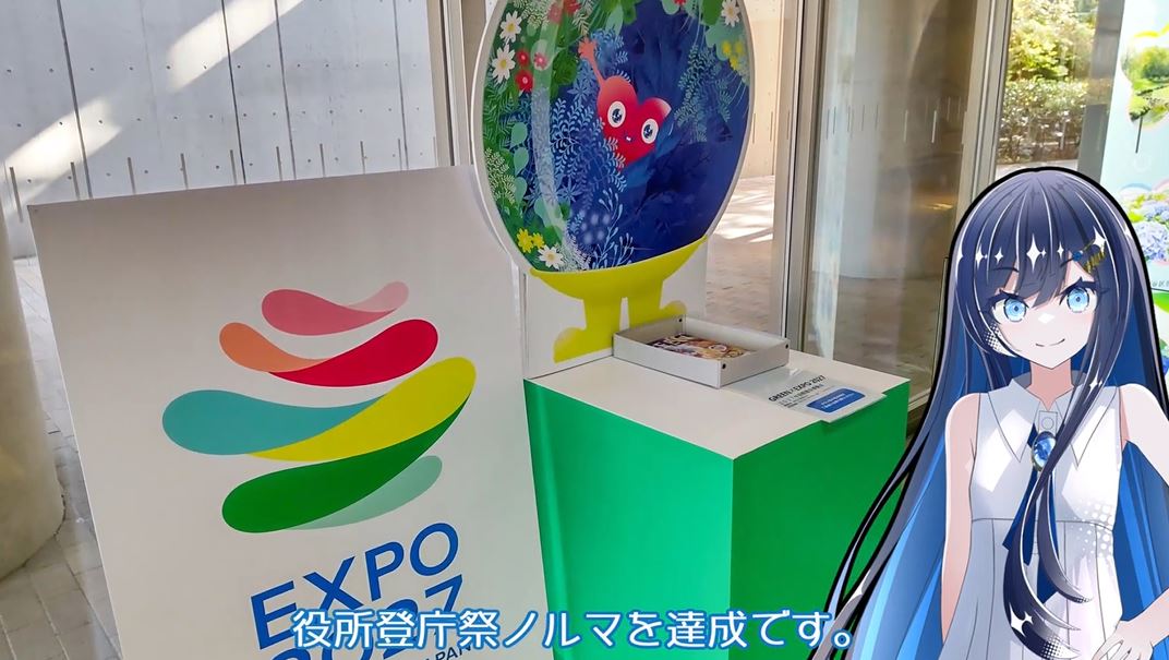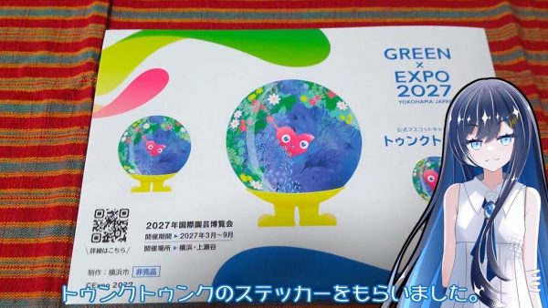 お目当ての万博ブースでは2027の花博のマスコットキャラクター「トゥンクトゥンク」のステッカーをもらいました。