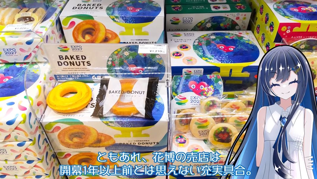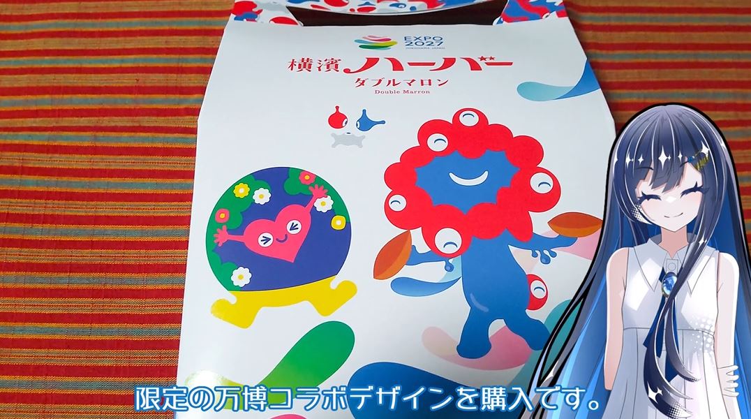 新横浜でのみすいぶさんの目的は横浜銘菓、ありあけハーバー。限定の万博コラボデザインは、ミャクミャクとトゥンクトゥンクが並んでいます。