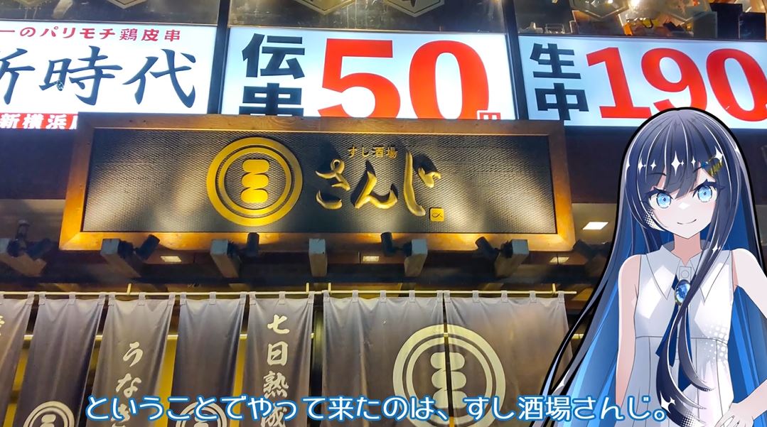 たっぷり歩いたあとは腹ごしらえ。すし酒場さんじへやってきたみすいぶさん。