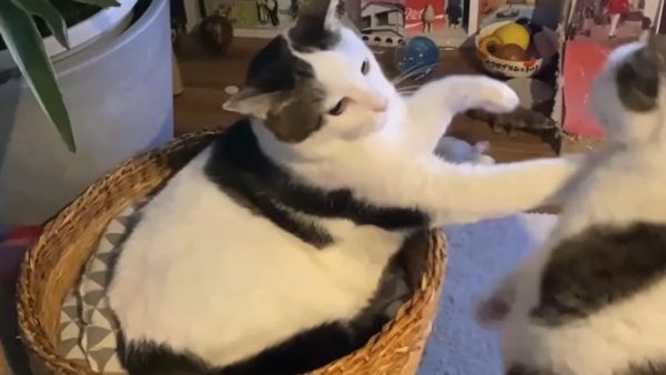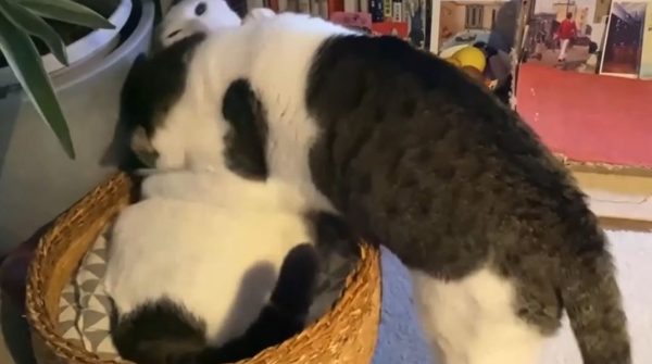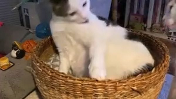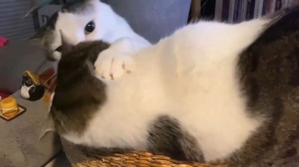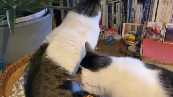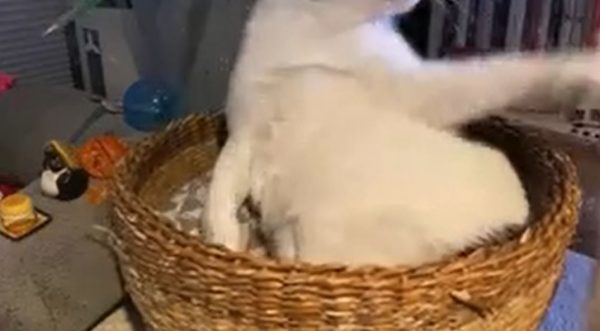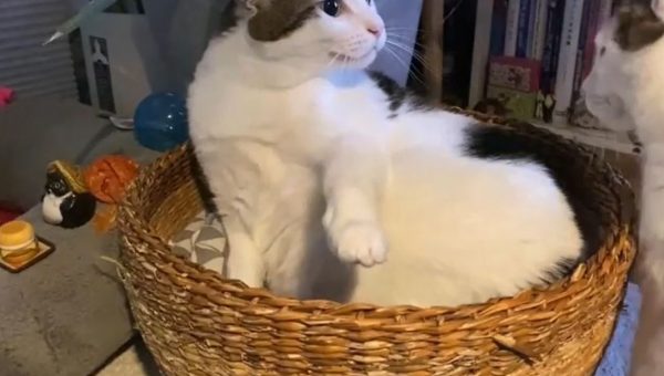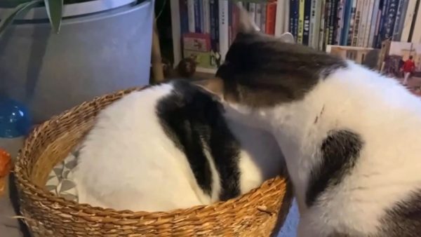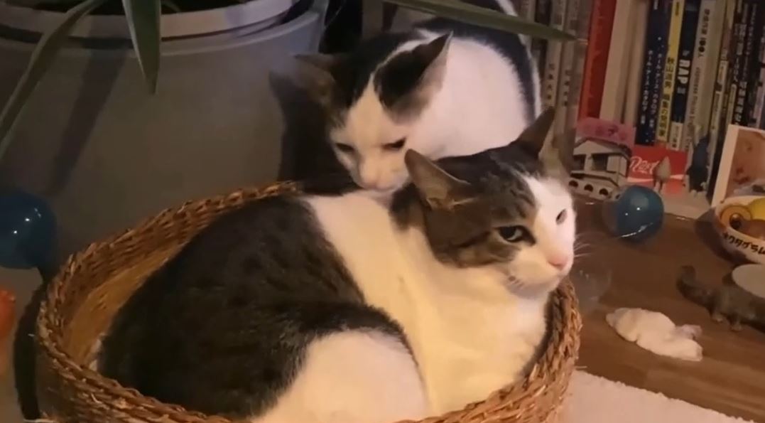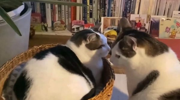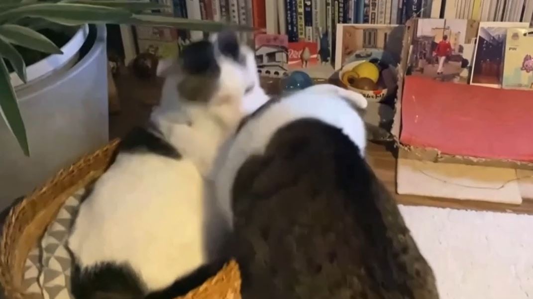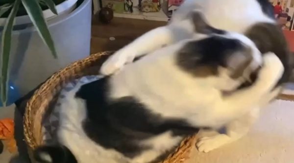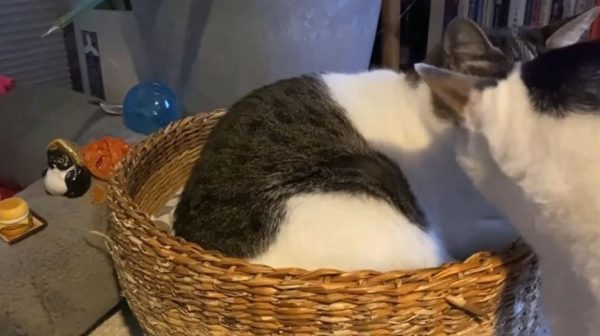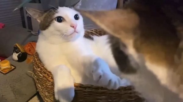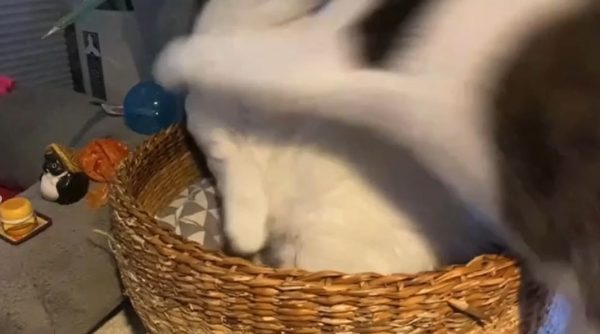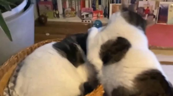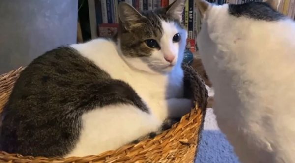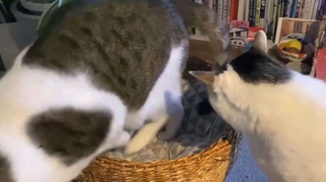 超人気スポットをめぐって兄弟猫ちゃんがケンカ! 攻守を交代しながらいつまでも戦いが続く「カゴ」の人気っぷりがスゴイ