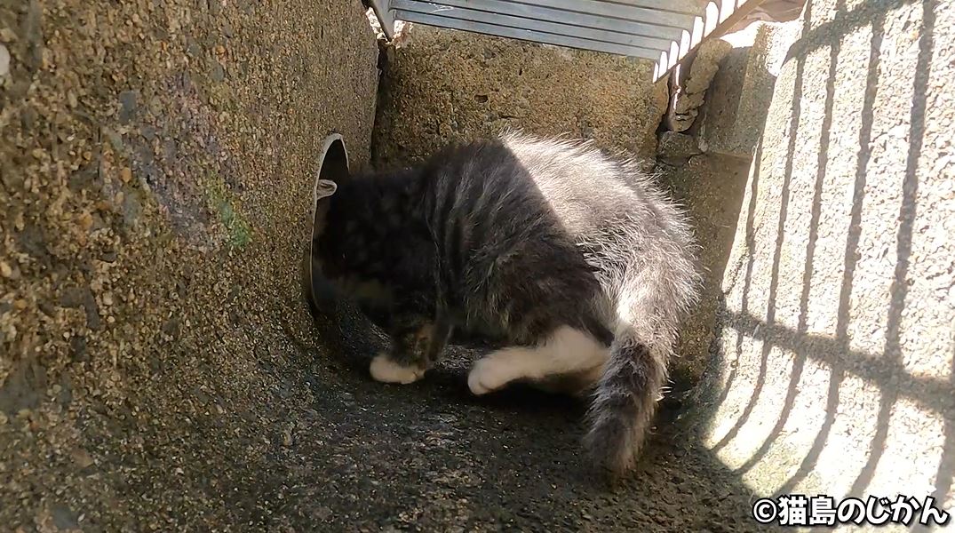 猫が吸い込まれていく穴を発見! 楽し気な猫たちが側溝の穴へと飛び込んだり、ちょこんと顔を出しては飛び出してくる姿が可愛い