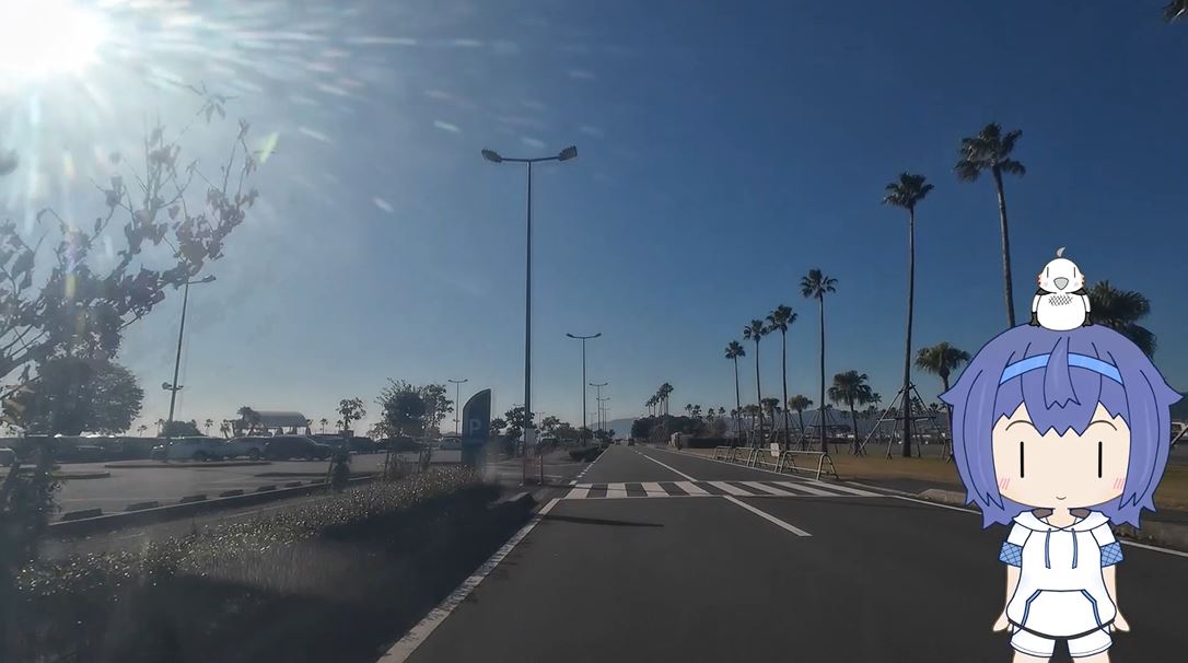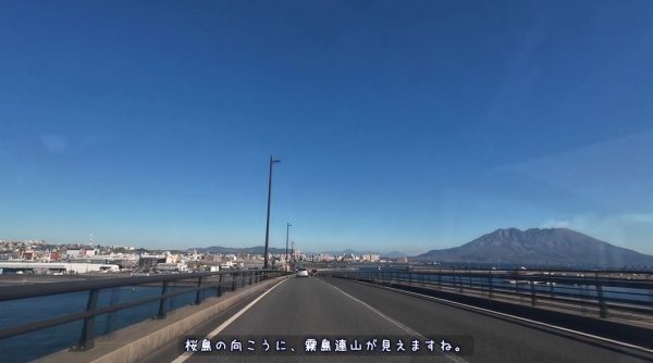今回、発射場のある種子島宇宙センターではなく、鹿児島市にある「マリンポートかごしま」という人工島から見るそうです。右手に桜島、左手に鹿児島市街地を見ながら走ります。