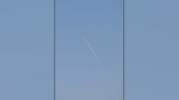 光が見えた、と思ったら左上に登って行くロケットの軌跡がくっきりしてきました。