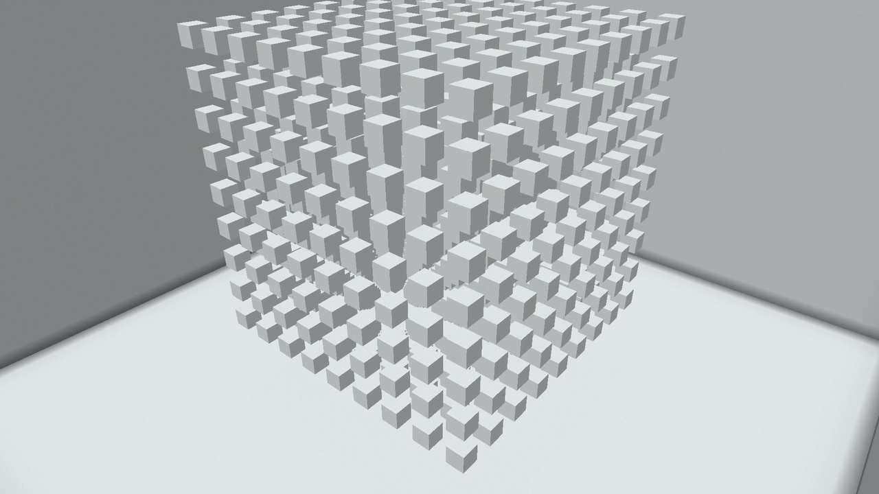 動画は「Move」という音声とともに、一つのブロックがバラバラに分解するシーンから始まります。この動画は音声で流れる「動詞」に合わせてブロックが形を変えていきます。