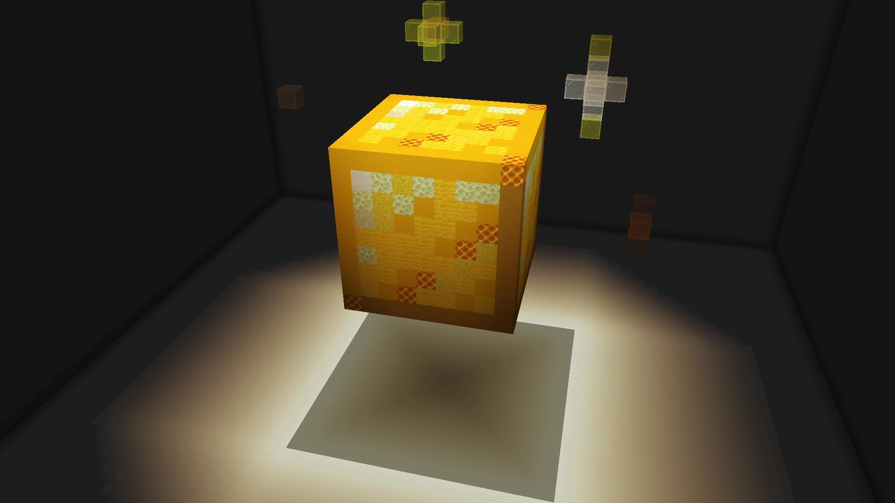 たとえば「Freeze」では波打つ水ブロックが一瞬にして複雑な氷の結晶へ。「Cook」では茶色のブロックがケーキになり、「Melt」で溶けて溶岩へと変化します。ブロックを使って液体のような滑らかさや、生き物のような愛らしい動きを表現している演出は、まさに魔法のようです。
