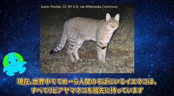 現在、世界中で人間のそばにいる家猫(イエネコ)は、すべてリビアヤマネコを祖先に持っています。
