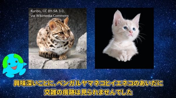 興味深いのは、ベンガルヤマネコとイエネコの間に交雑の痕跡が見られなかったこと。イエネコのDNAにはベンガルヤマネコの遺伝子が全く含まれないのだとか。両者には数世紀にわたる不思議な空白期間が存在していたそうです。