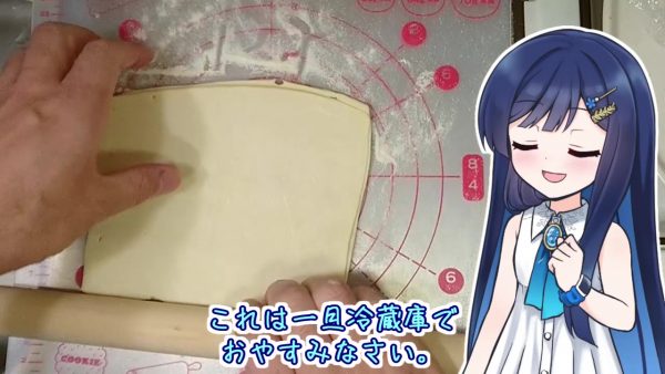 まずはパイシートを伸ばして土台を作るシーンから。解凍して伸ばしたら、冷蔵庫に寝かせておきます。