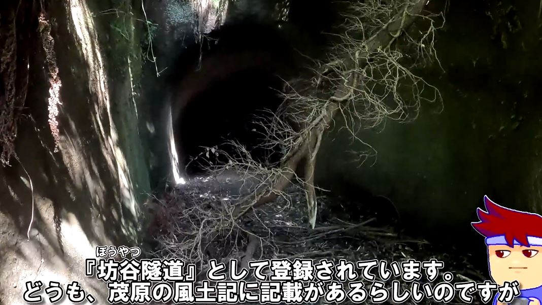 このトンネルはグーグルマップには「坊谷隧道(ぼうやつずいどう)」として登録されています。茂原の風土記に記載があるらしいのですが、原文にあたれなかったとのこと。