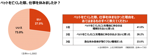 「ペットが亡くなった時仕事を休みますか?」1000人に聞いた結果休む人は約3割という事が判明、休まない理由は「理解されないと思った」が最多