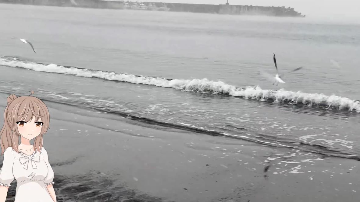 小鳥たちと違い、カモメになると波に動じる様子はありません。
