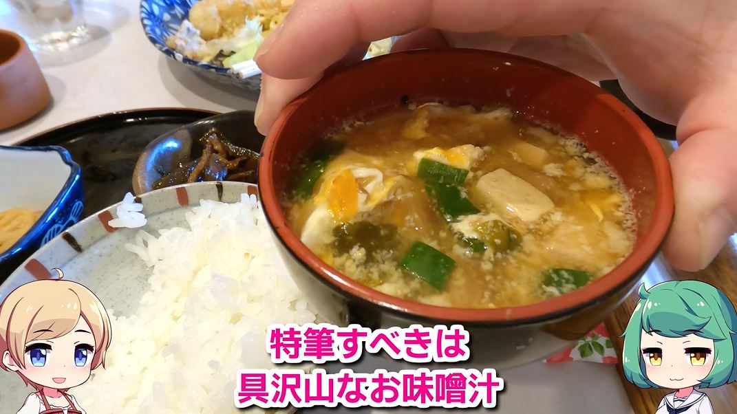 好きだというレンコンや好みの味だったという佃煮を食べたあと、具沢山なお味噌汁に口を付けたテイクアウト姉妹さんは「特筆すべきもの」と、気に入った様子。