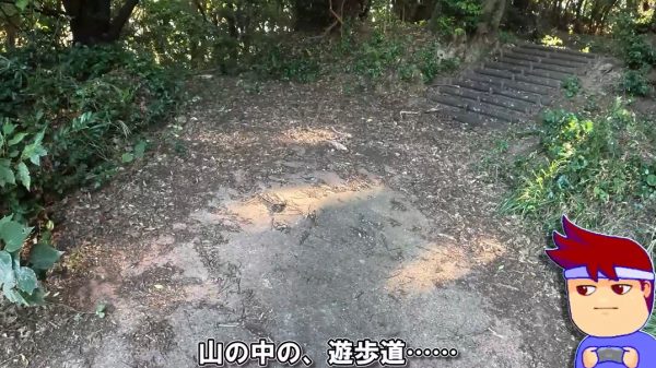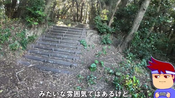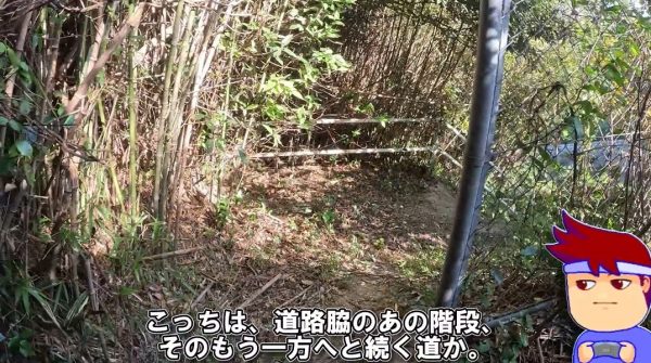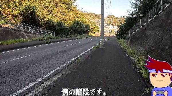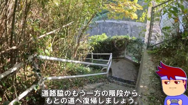 道路脇のもう一方の階段から元の道へ戻ることにします。