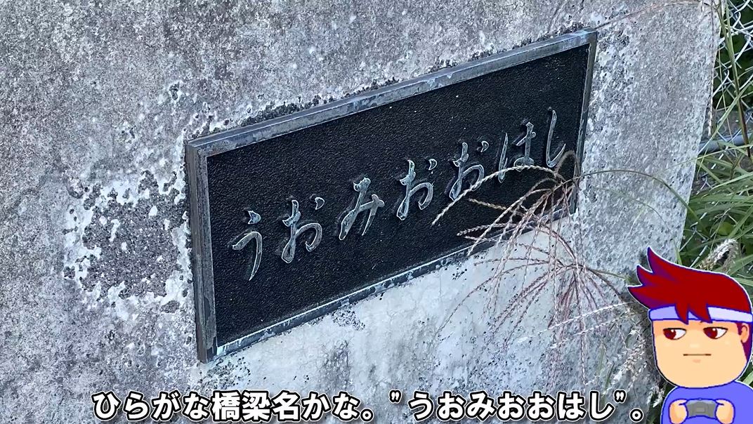 港の見える右側には、「うおみおおはし」と平仮名で橋梁名が刻まれていました。