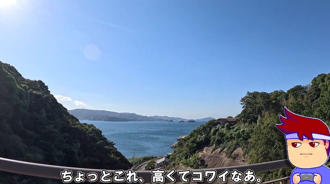 橋の上を歩きはじめるとアーチが無いため左右の開放感が凄まじいとのこと。眺めは絶品ですが、「ちょっとこれ、高くてコワイなぁ」とウスイさん。
