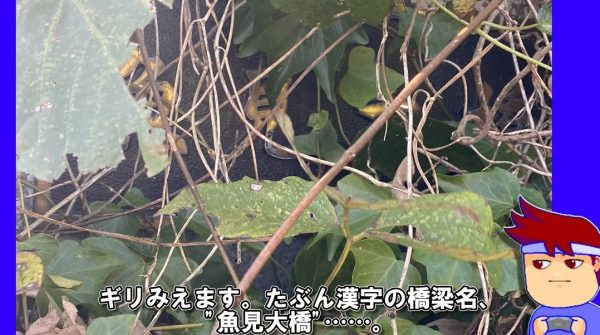 草に覆われた銘板からは、何とか漢字の橋梁名「魚見大橋」が読み取れました。
