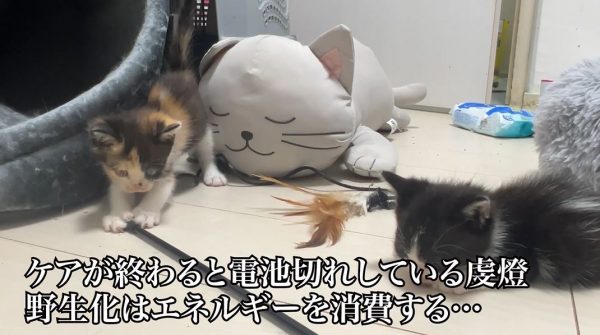 野生化した虔燈ちゃんにどう対処するかというと、保護者としてケアを行います。これは親猫と思わせるためとのこと。