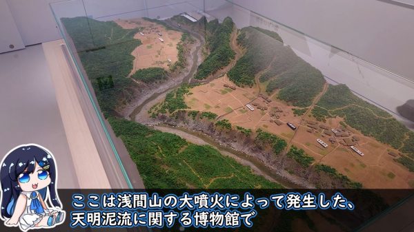 ここは浅間山の大噴火によって発生した天明泥流に関するミュージアム。八ッ場ダム建設をきっかけに発掘された火砕流で埋まった村の遺物の展示を見たり、当時の暮らしや泥流が起きたメカニズムを学べます。