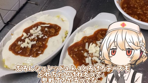 最後にとろけるチーズを散らしたら、焦げ目が付くまでオーブンで焼きます。