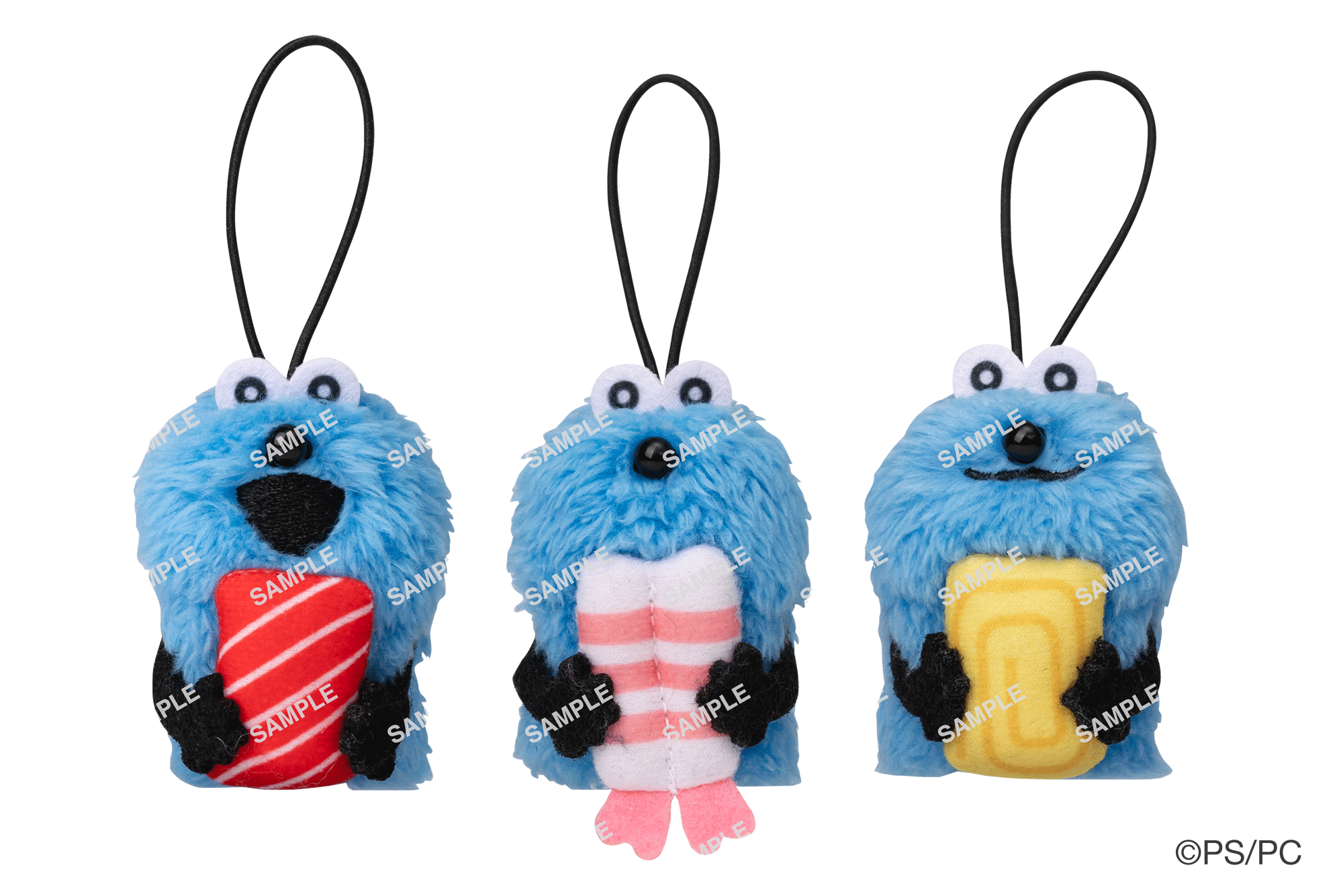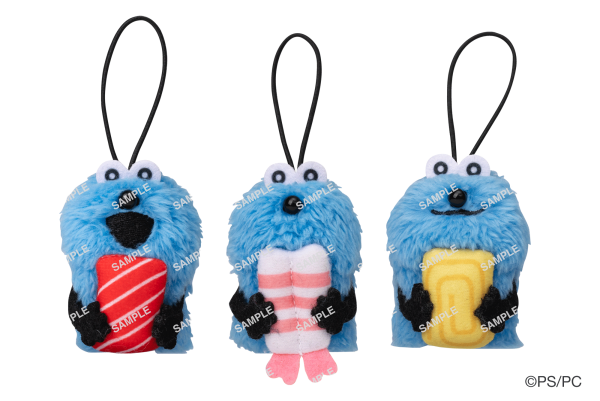 おすしのネタをギュッと抱えるスンスンの、指人形としても遊ぶことができるコラボ限定マスコットです。