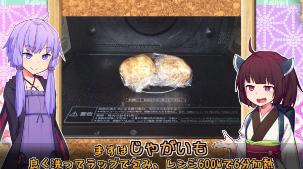 まずはジャガイモをよく洗ってラップに包み、レンジの600wで6分加熱します。