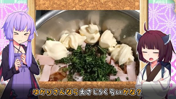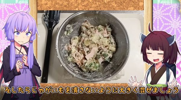 塩コショウもお好みで加えるのですが、いぶりがっこは塩気が強いので今回塩は控えめにしたとのこと。ポテサラは味見必須だとか。