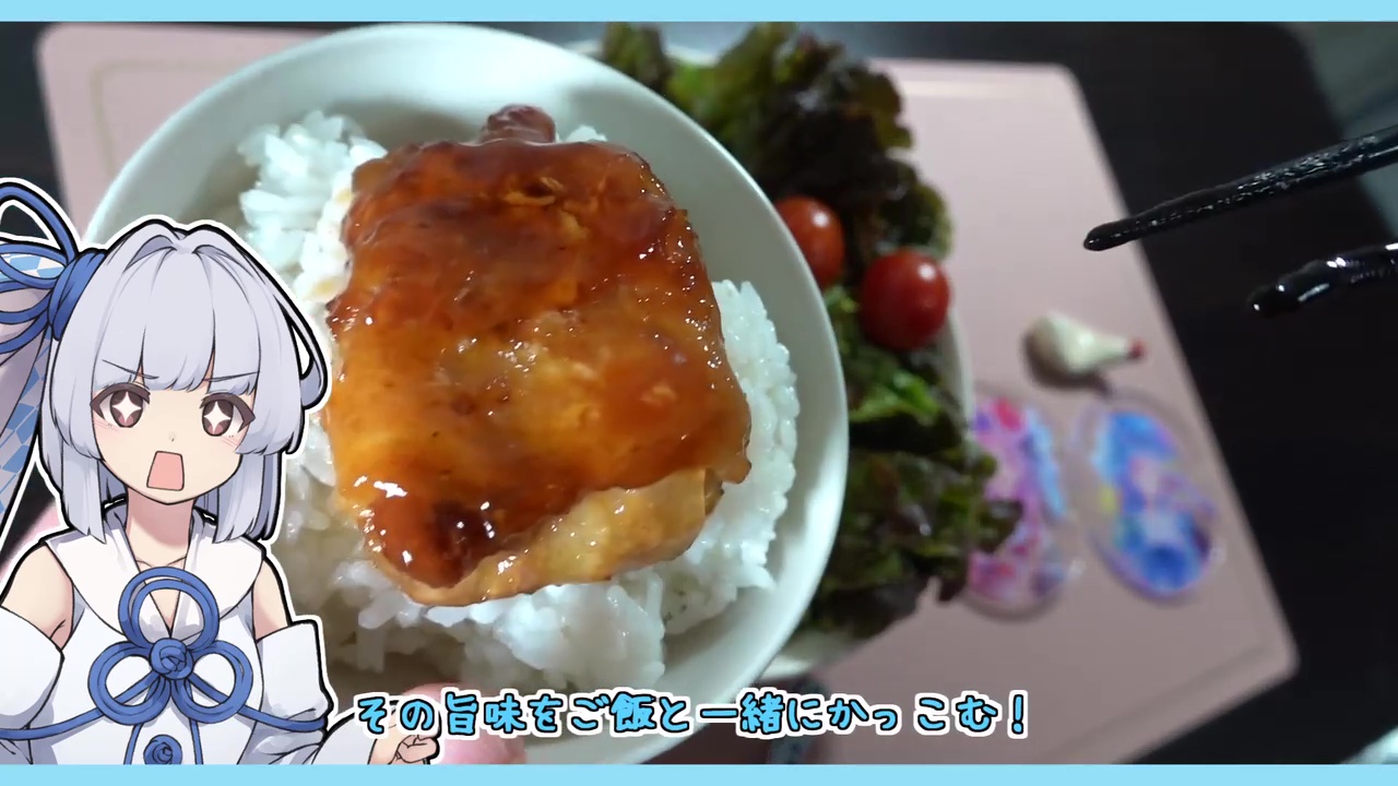 実食シーンでは、葵ちゃんが「柔らかジューシー!」と叫び目を輝かせます。タレがたっぷりしみ込んだ豚バラと白ご飯の相性は抜群です。さらに動画のラストは「飲酒の時間だー!」とレモンサワーで乾杯。大満足の晩酌タイムとなりました。
