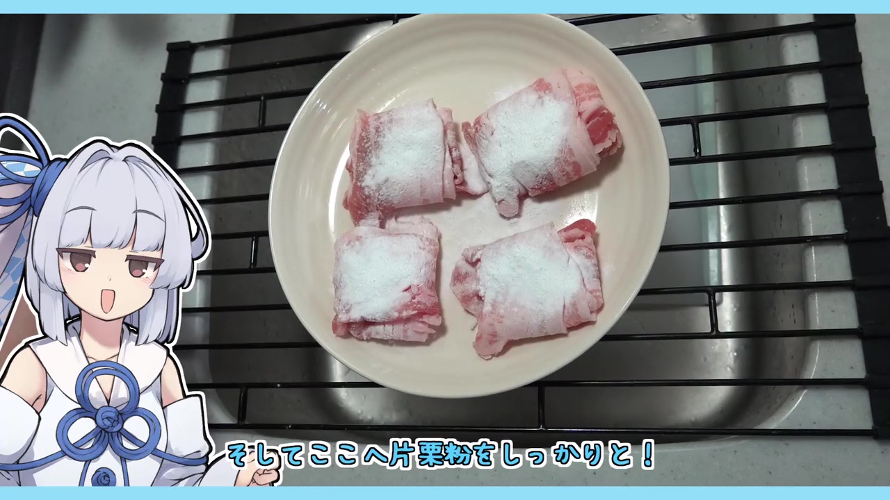 ここへ片栗粉をしっかりとまぶします。肉汁を閉じ込めるバリアになりつつ、タレにとろみをつける役割も担います。