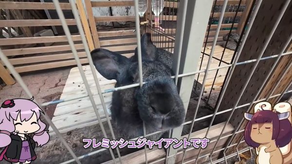 まずは大きなウサギ、フレミッシュジャイアントにエサをあげることにしたのですが、ものすごい力でニンジンを取られてしまいました。