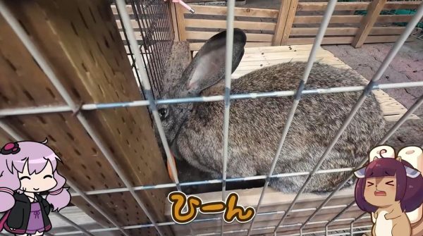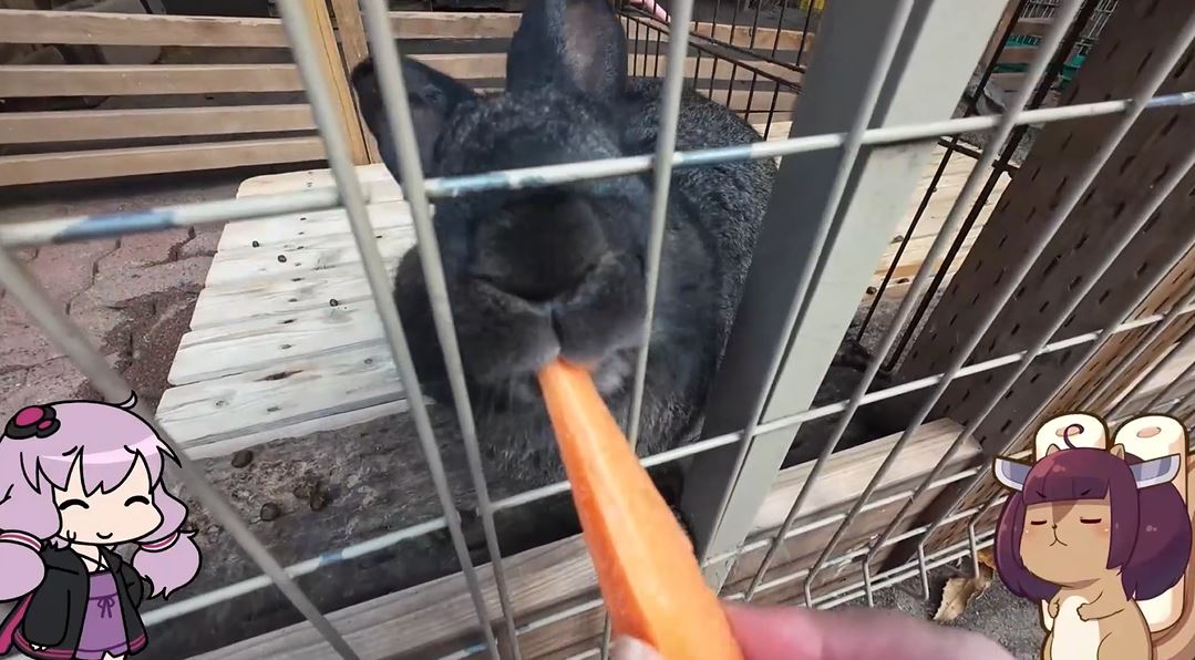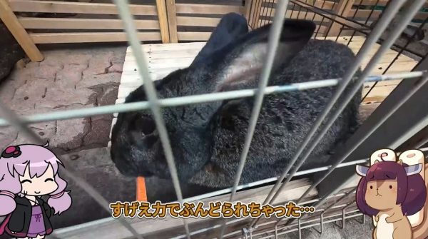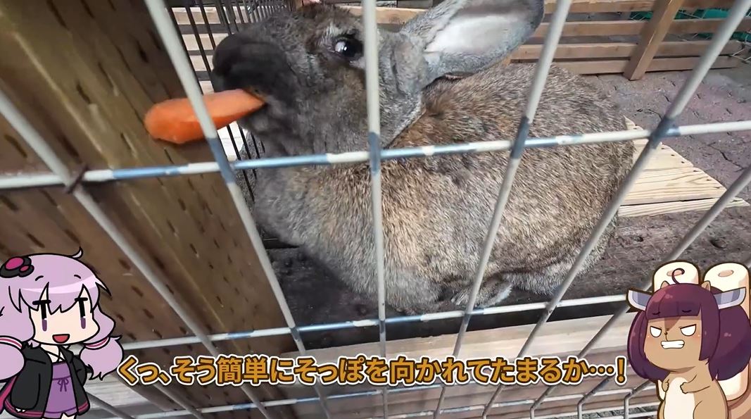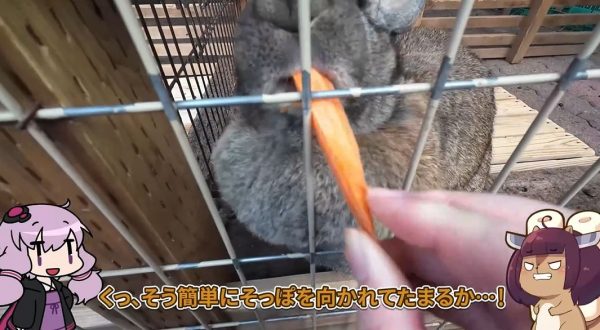 お次のウサギさんの時には「そう簡単にそっぽを向かれてたまるか!」と頑張ったのですが、やはり奪い取られてしまいます。モグモグシーンを間近に見るのは難しいようです。