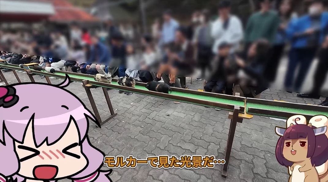 1匹が姿をあらわすと、その後ろに続いて走ってくるモルモットたち。まさにモルカーで見た光景です。