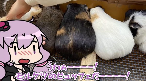 並んだモルモットを前に「モルケツのビュッフェだーーーー!」とこちらにも興奮が止まりません。