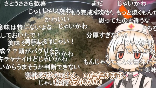 フライパンの中でふつふつと煮え立つもんじゃを前に、沢山のコメントが寄せられています。